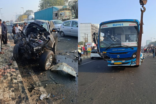 Gandhinagar Shocker: Speeding SUV Jumps Divider, Crashes Into GSRTC Bus;...